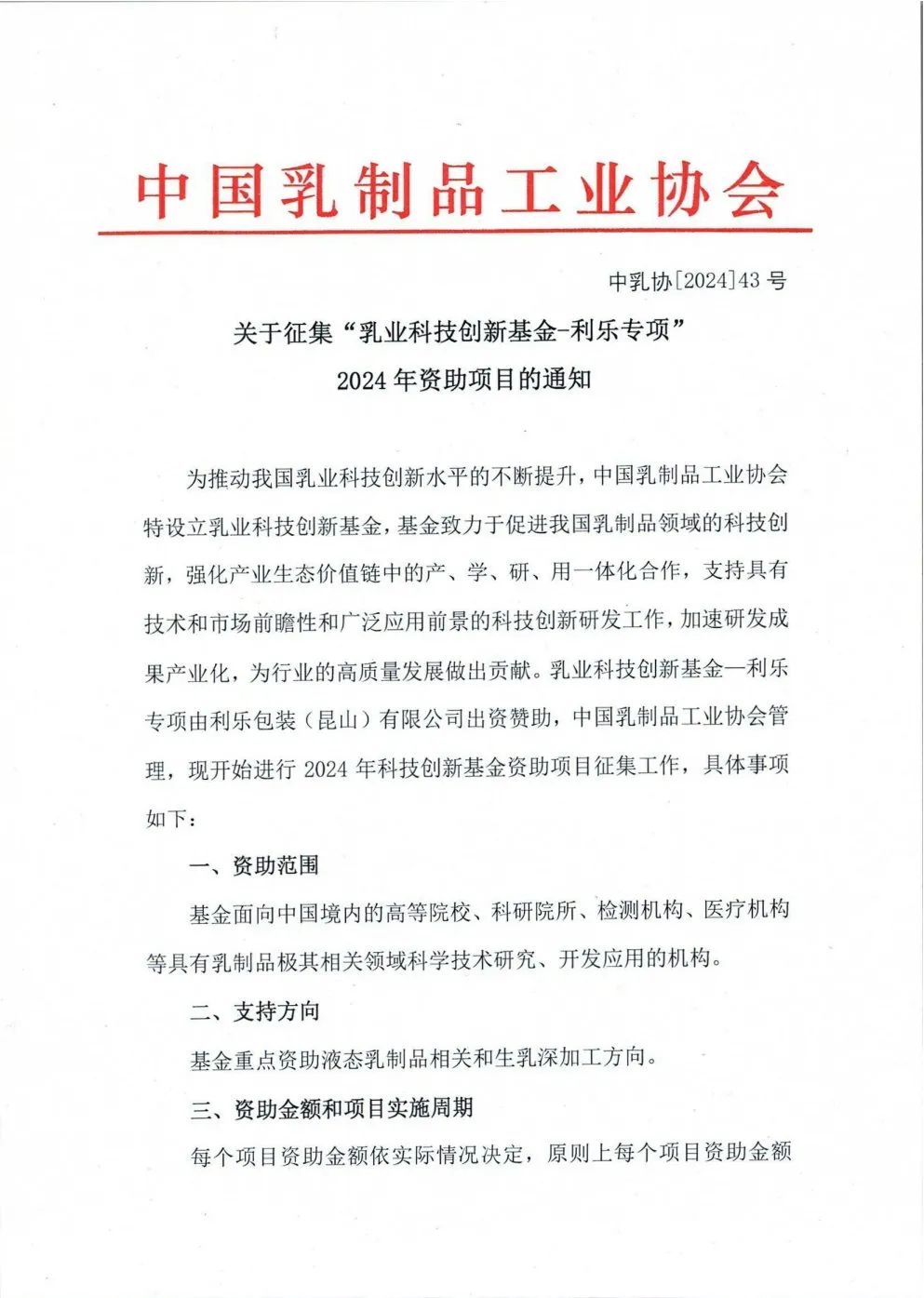 • 關(guān)于征集“乳業(yè)科技創(chuàng)新基金-利樂專項(xiàng)”2024年資助項(xiàng)目的通知